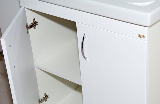 - тумба под раковину: 2 распашные дверцы, 2 металлические ручки, вкладные полки, крепления и опорные ножки