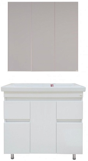 Полный комплект мебели для ванной, включающий распашной шкаф с зеркалом и тумбу с раковиной. Вместительный шкаф «Балтика 80» имеет множество внутренних полок, на которых можно разместить все необходимые в быту вещи, в тумбе предназначены три отделения и два выдвижных ящика. Все двери снабжены мягкими доводчиками, предотвращающими шумное захлопывание.
