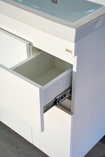 На тумбе предусмотрены крепления для раковины и регулируемые опорные ножки. Раковина Kirovit из фаянса обладает шириной 80 сантиметров. Общие габариты комплекта – 81х45х85 сантиметров.