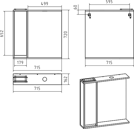 В комплекте: тумба, раковина, зеркальный шкаф, ножка (4 шт.), комплект креплений.