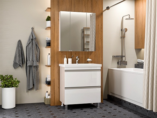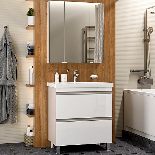 В комплекте: тумба, раковина, зеркальный шкаф, ножка (4 шт.).