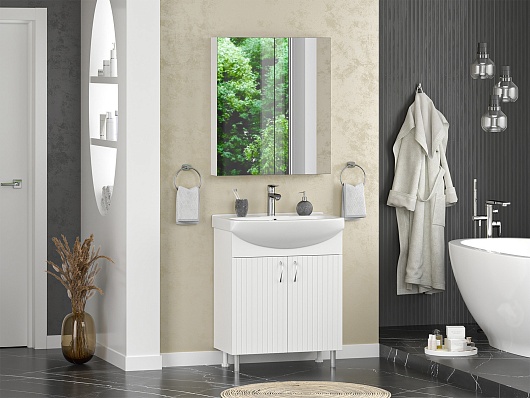 В комплекте: тумба, раковина, зеркальный шкаф, ножка (4 шт.).