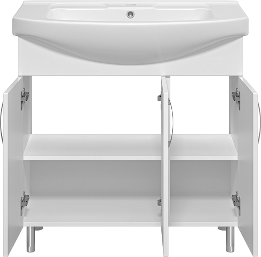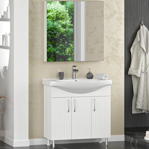 В комплекте: тумба, раковина, зеркальный шкаф, ножка (4 шт.).