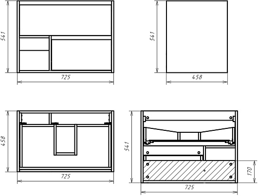 - Габариты корпуса тумбы (ШxГxВ): 727x458x542 мм.