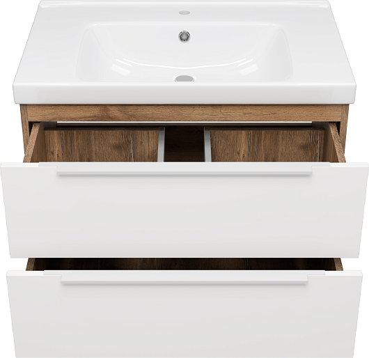 Тумба под раковину Карат 80 подвесная белая/дуб галифакс олово
