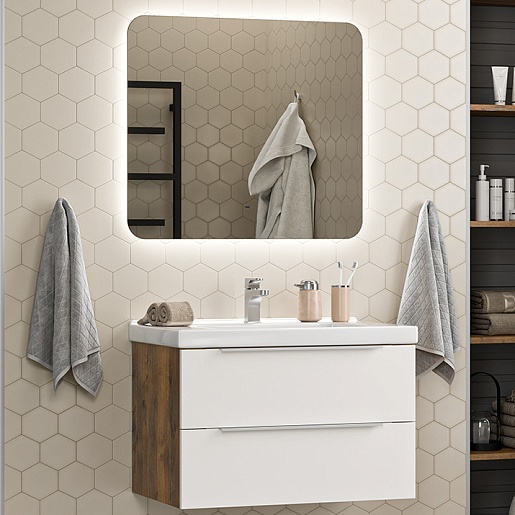 Misty Мебель для ванной Карат 80 подвесная белая/дуб галифакс олово