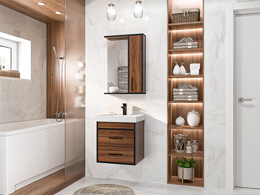 Зеркальный шкаф Кедр 50 R орех/черный