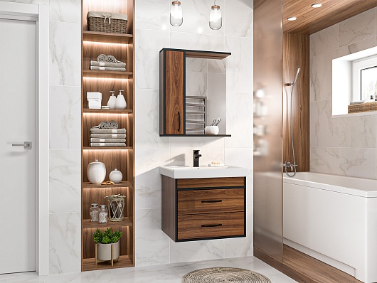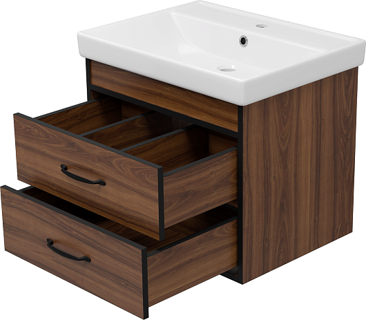 Тумба под раковину Кедр 60 подвесная орех/черная