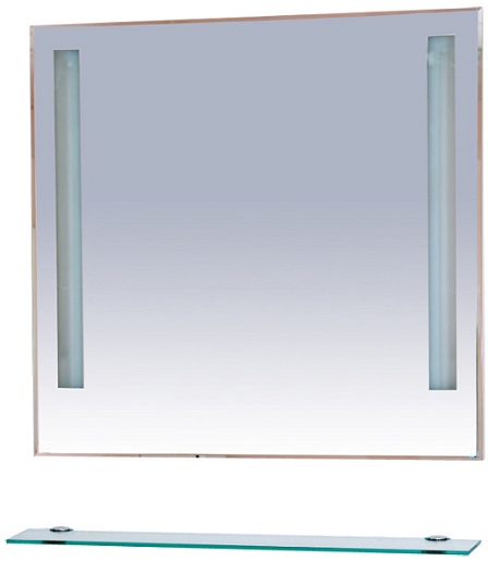 Комплектация: зеркало с двумя встроенными светильниками по бокам, стеклянная полочка.