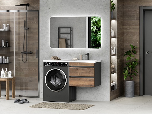 Misty Мебель для ванной Коломбо 120 R подвесная под стиральную машину дуб галифакс/антрацит