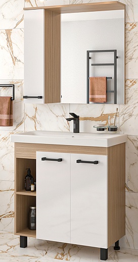 Тумба под раковину Крафт 80 белая/зебрано сахара
