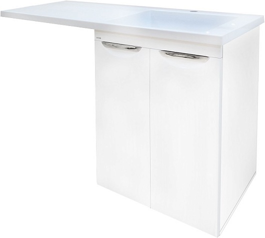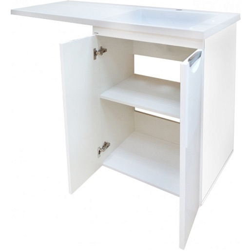 Описание: влагостойкое зеркальное полотно, шкафчик, полочка, светодиодная подсветка, доводчики.Тумба с раковиной Куба 60 R