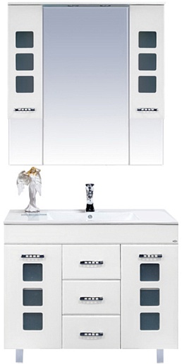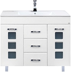 - тумба под раковину: 2 распашные дверцы с вставками матового стекла, 3 выдвижных ящика, 5 металлических ручек, комплект опорных ножек и крепления