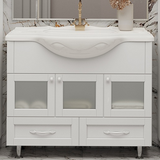 Тумба с раковиной Misty Латте 105 2 ящика белая - арт. П-Лат01105-0122Я / 7.3272.0.500.0.