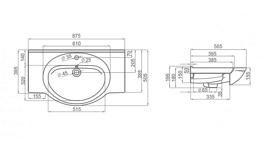 - Умывальник мебельный Della "Mia"/"DIY"-85 см , фаянс