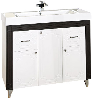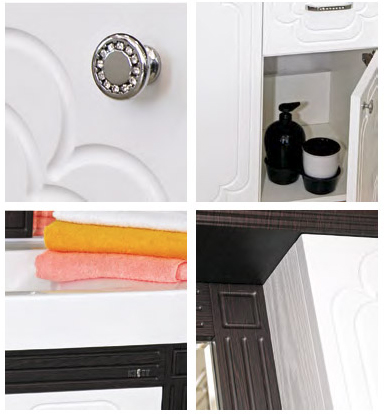 - тумба под раковину: 3 распашных дверцы, 2 выдвижных ящика, 5 металлических ручек с кристаллами, комплект опорных ножек и крепления