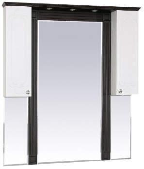 Комплектация: зеркальное полотно с козырьком со встроенной подсветкой. Распашные шкафчики с ручками инкрустированными кристаллами и вкладными полками.