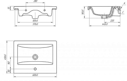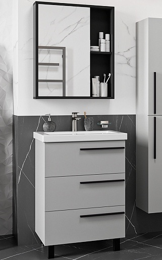 Напольная тумба с раковиной Misty Ненси 60 серая - арт. П-Нен-07060-503Я / S-UM-COM60/1-w.