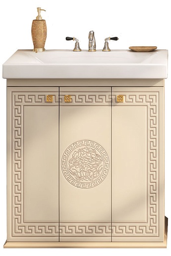 - тумба под раковину: 3 распашные дверцы, 3 золотистые ручки с кристаллами