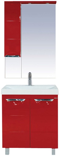 Комплектация: зеркальное полотно, козырек со встроенной подсветкой, распашной шкаф с вкладными полками.