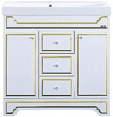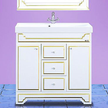 - Арт. Л-Пра01090-0133Я Тумба Praga 90: фигурный цоколь, три выдвижных ящика, две распашные дверцы. Ручки декорированы кристаллами.