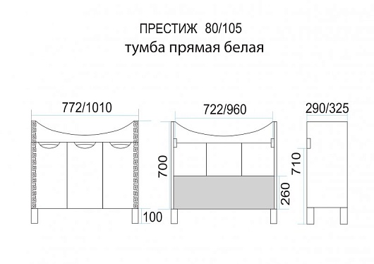 - тумба для комплекта Престиж 105, с распашными фасадами, доводчики.