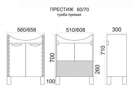 - тумба для комплекта Престиж 70, с распашными фасадами, доводчики.