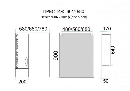 Зеркало-шкаф «Престиж 70» R, арт. Э-Прсж02070-013П