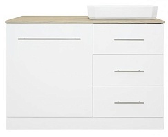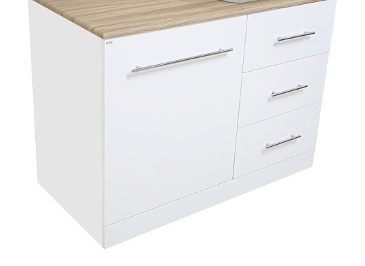 • Тумба под раковину респект 120: распашной фасад, доводчики, три ящика, фурнитура-хром.