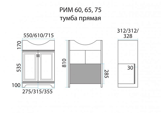 - Рим 75 тумба, два распашных фасада, доводчики, фурнитура-бронза.