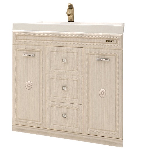 - Тумба под раковину Misty Roma 90 ясень патина, арт. Л-Ром01090-4734Я: раковина, выдвижной ящик - 3 шт., ручка - 5 шт., распашная дверца - 2 шт.