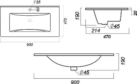 Мебельная раковина Quadro 90
