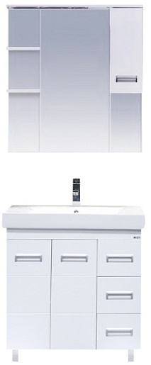 Комплектация: зеркальное полотно с боковыми полками и козырьком со встроенной подсветкой. Распашной шкаф с вкладной полкой.
