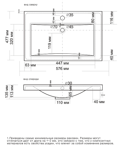 - Раковина из литьевого мрамора со слив-переливом.