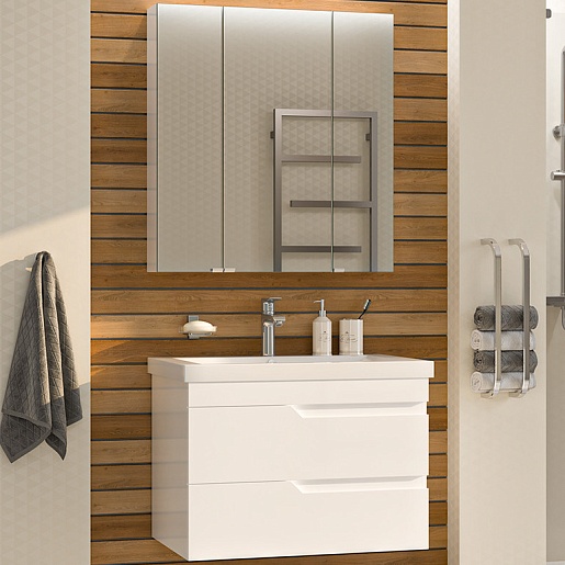 В комплекте: тумба, раковина, зеркальный шкаф, крепеж.
