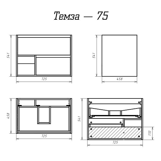 Темза 75 тумба подвесная, с двумя ящиками, нишей/полочкой