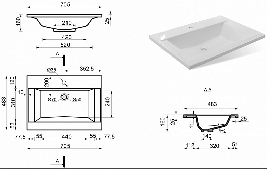 Мебельная раковина Рава 70