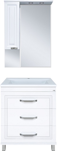 В комплекте: тумба, раковина, зеркальный шкаф, комплект креплений.