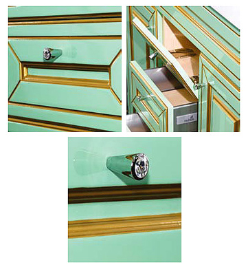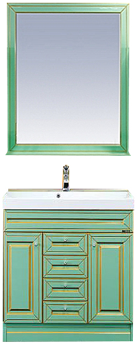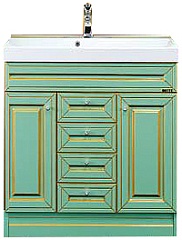 - тумба под раковину Misty Vena 75 салатовая патина: 2 распашные дверцы, 3 выдвижных ящика, хромированные ручки с кристаллом.