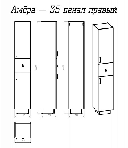 Пенал для ванной Амбра 35