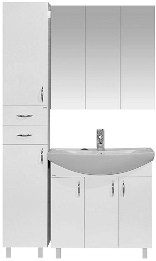 Описание: Пенал для ванной с двумя распашными дверцами и выдвижными ящиками. Монтаж подвесной и напольный, в комплекте крепления и опорные ножки.