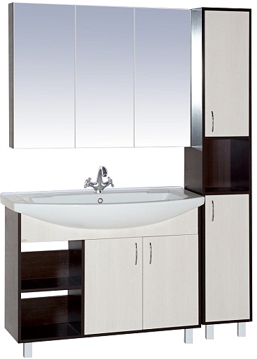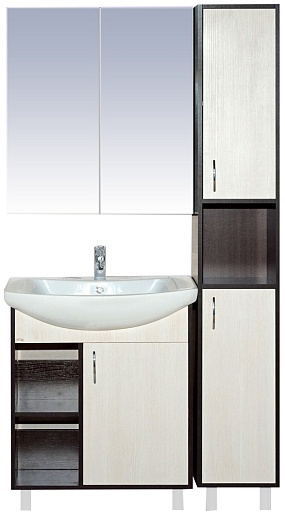Описание: Пенал для ванной с двумя распашными дверцами и нишей по центру. Монтаж подвесной и напольный, в комплекте крепления и опорные ножки.