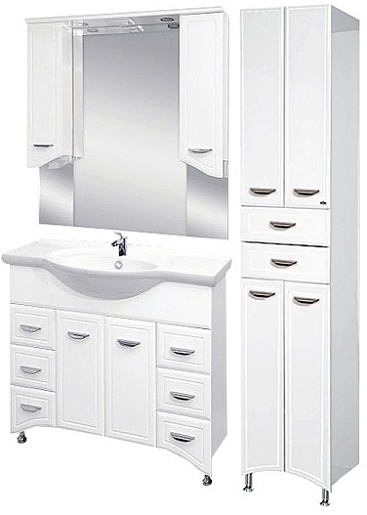 Описание: Пенал для ванной с распашными дверцами и выдвижными ящиками. Монтаж подвесной и напольный, в комплекте крепления и опорные ножки.