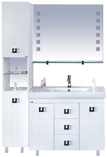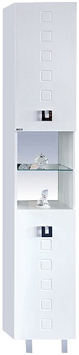 Описание: Пенал для ванной с двумя дверцами, нишей по центру со стеклянной полкой и бельевой корзиной. Монтаж подвесной и напольный, в комплекте крепления и опорные ножки, механизм доводчика.