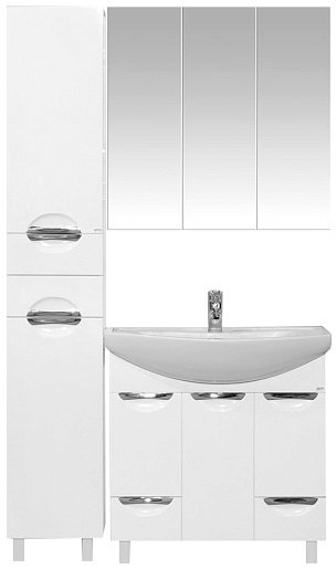 Описание: Пенал для ванной с двумя распашными дверцами и выдвижными ящиками. Монтаж подвесной и напольный, в комплекте крепления и опорные ножки.