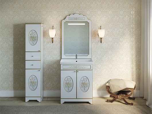 Misty Пенал для ванной Milano 35 белый патина/декор R