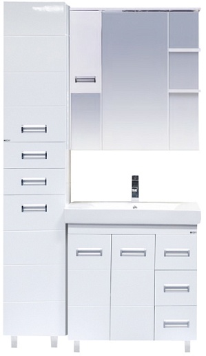 Описание: Пенал для ванной с двумя дверцами, выдвижными ящиками и бельевой корзиной. Монтаж подвесной и напольный, в комплекте крепления и опорные ножки.