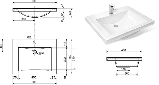 - Материал: литьевой мрамор.