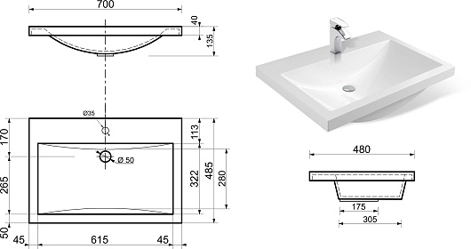 Раковина мебельная Misty Эстет Монако 70 - арт. ФР-00000792.