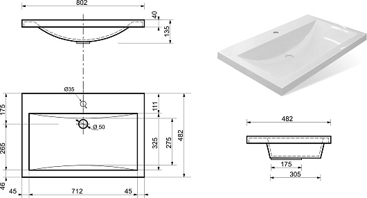 Раковина мебельная Misty Эстет Монако 80 - арт. ФР-00002611.